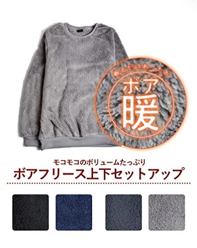 (アローナ)ARONA ボアフリース 上下 セットアップ 冬 暖かい 防寒 メンズ もこもこ 着る毛布 パジャマ ルームウェア メンズ /S ブラック