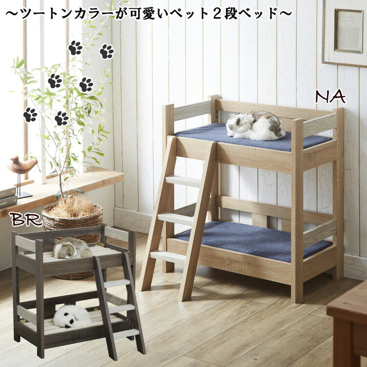 ペット用 猫 犬 ハシゴ付き 2段ベッド 木製 ペットベッド ツートン かわいい すのこベッド かわいい 可愛い ペット 家具 ペット用家具 おしゃれ(代引不可)【送料無料】