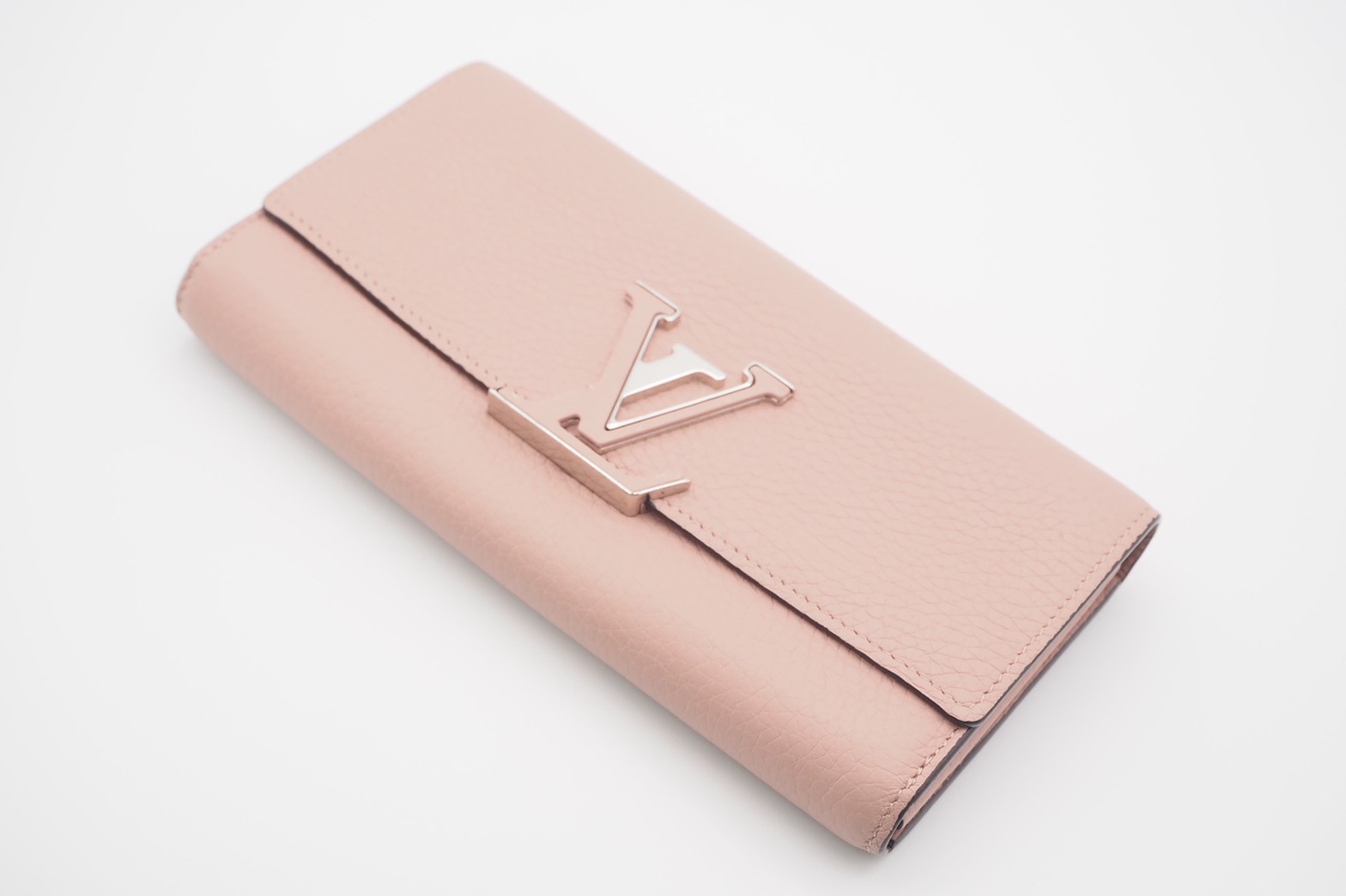 ブランド LOUIS VUITTON ルイ ヴィトン 品名 ポルトフォイユ カプシーヌ マグノリア シリアル MI2230(2020年製造) 型番 M61250 カラー系統 ピンク サイズ 約横20cm 高さ11cm マチ2.5cm 付属品 箱・袋・冊子・リボン 仕様 内側/札入×2 小銭入×1 ポケット×12 その他ポケット×1 参考定価 -円 管理番号 R0128 内外面スレ(小) 金具キズ(中) ロゴレザー部分スレキズ(小) 小銭入れコイン跡有り 中古品のため、内面、外面ともに写真で目立たない程度の傷、スレ、汚れがございます。