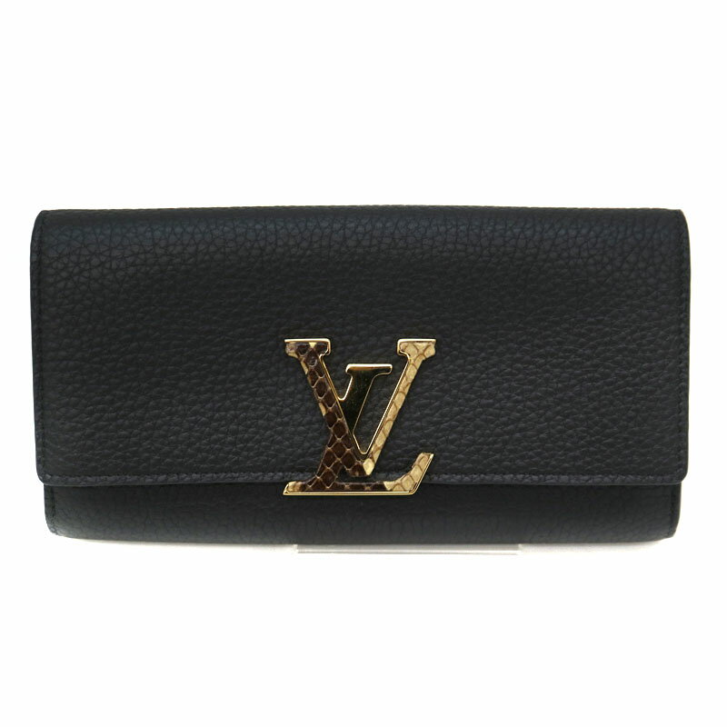 LOUIS VUITTON【ルイヴィトン】 N90129 ポルトフォイユ・カプシーヌ パイソン 財布 トリヨンレザー ノワール ブラック系 LV 長財布 USED-8 【中古】 A22-1069 質屋 かんてい局茜部店