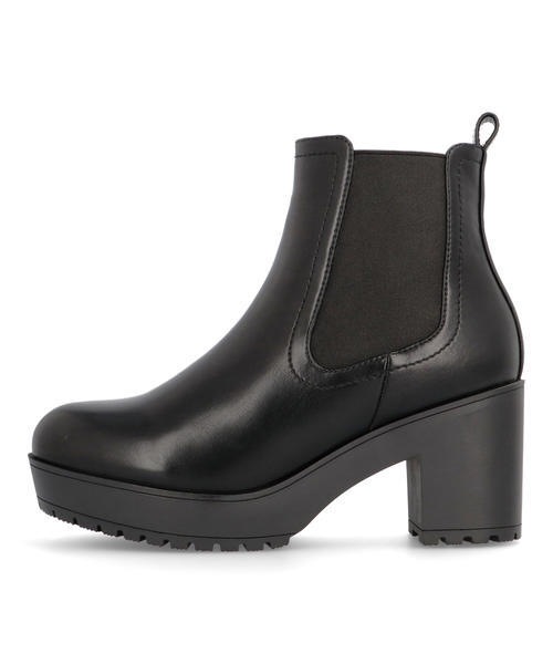 厚底のヒールアップスタイルで、トレンド感のあるルックスに仕上げたサイドゴアブーツ。