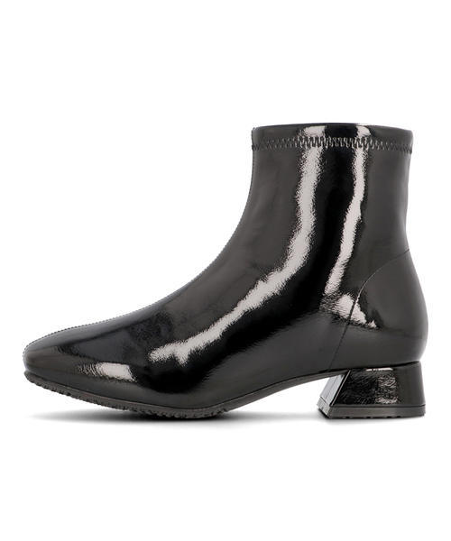 つややかなエナメルの光沢やトレンドのスクエアトゥなど、ファッション感度の高い1足です。